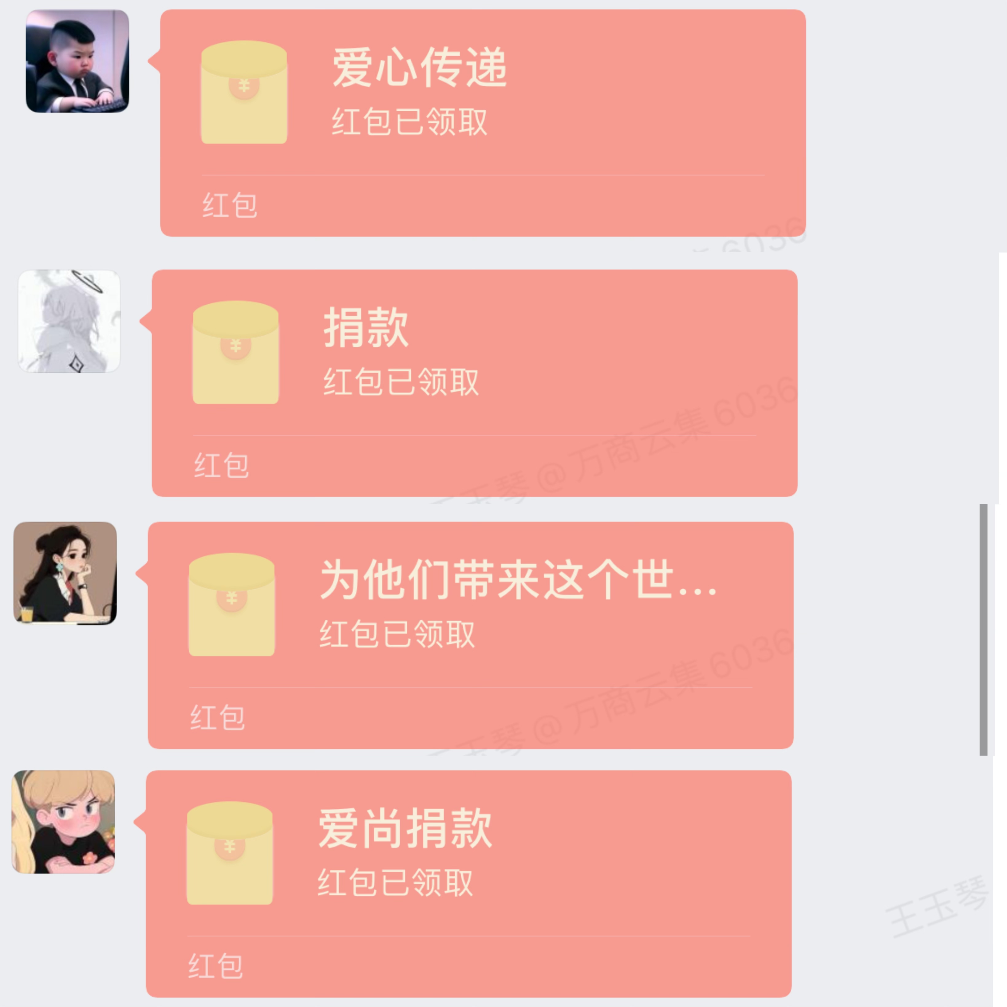 我们相信,通过爱的力量,我们能凝聚更多的温暖,让世界变得更加美好!万商云集作为一家富有社会责任感的企业,也深受员工爱心的激励。员工们的爱心捐赠体现了企业文化的核心:感恩之心。感恩源自于对他人的关怀,同时也是企业发展的重要动力之一。相信我们每一个人,都将带着这份温暖,成为有温度的人!